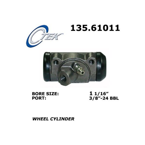 c-tek standard wheel cylinder centric parts offers a full line of c-tek standard replacement brake and clutch parts for import and domestic vehicles. C-tek components provide exceptional quality and value. Utilizing world-wide manufacturing sources allows centric parts to provide the highest quality replacement parts while maintaining value. Reservoirs and caps included; pressure tested for worry free performance; wide application coverage. aplication summary: 1960 - 1965 ford ranchero, 1960 - 1965 mercury comet, 1960 - 1969 ford falcon, 1961 - 1965 ford falcon sedan delivery, 1961 - 1965 mercury cyclone, 1962 - 1965 mercury villager, 1964 - 1965 mercury caliente, 1964 - 1970 ford mustang, 1970 - 1970 ford maverick