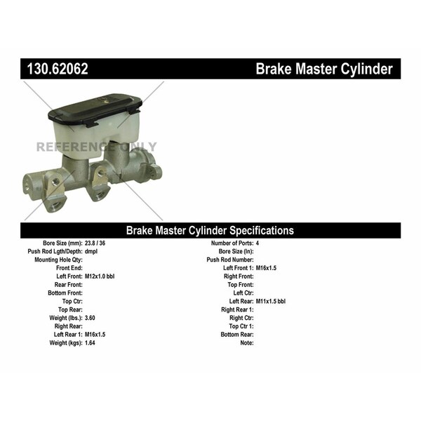 Centric 130.62062 Centric Premium Brake Master Cylinders (Discontinued)