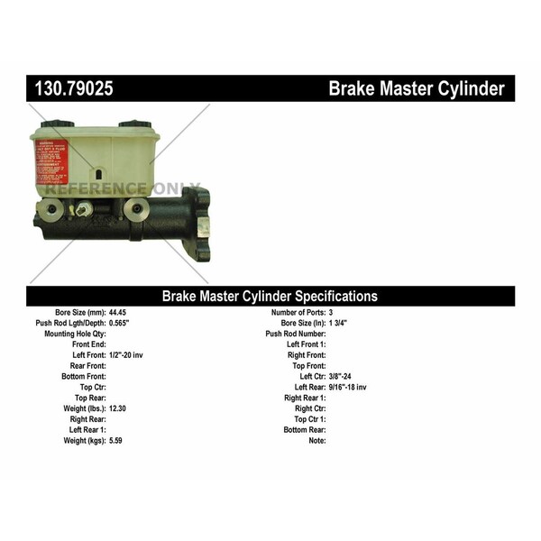 Centric 130.79025 Centric Premium Brake Master Cylinders (Discontinued)