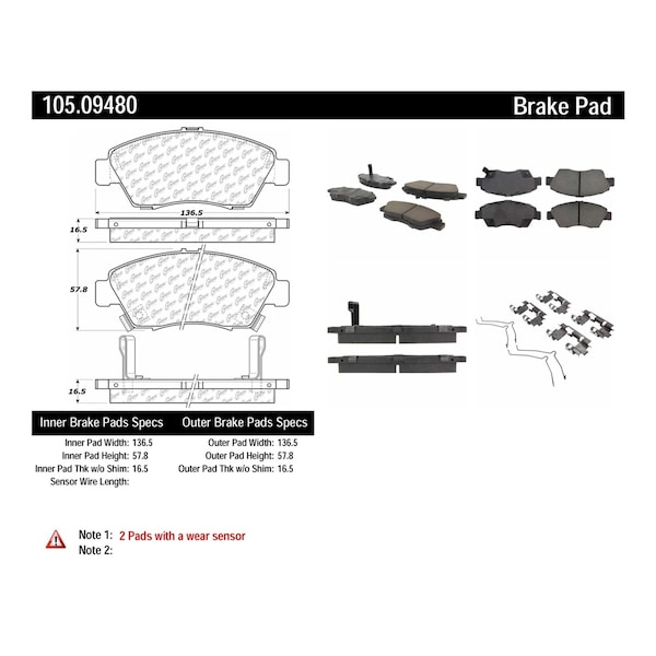 Disc Brake Pad Set 2003-2011 Honda Civic 1.3L, 105.09480