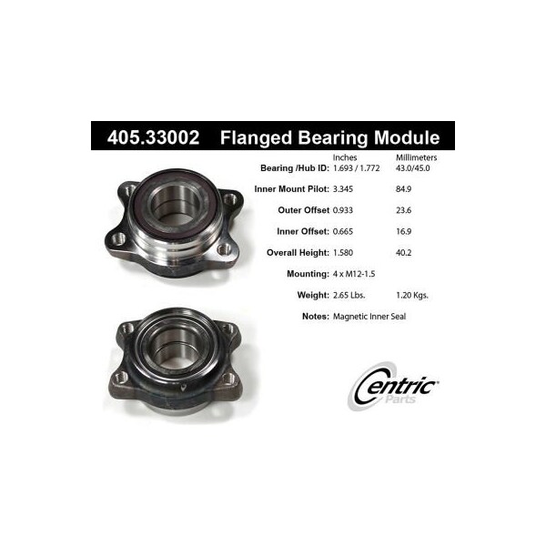 centric premium flanged wheel bearing module; with abs centric premium non-driven hubs (without abs) - engineered from the highest quality materials for extended service life. Widest range of wheel hubs & bearings in the market. 100% o.e. Quality components. Premium seals protect internal components. Exacting fit and function. Complete cataloging, featuring the latest applications and covering from 1940 to 2017. aplication summary: 2005 - 2008 audi a6 quattro, 2008 - 2019 audi r8