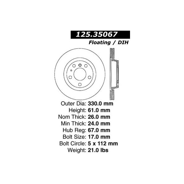 centric premium high carbon alloy brake rotor centric 125 series high carbon alloy brake rotors contain an advanced metallurgy that greatly reduces the possibility of pad squeal especially with higher friction, european style brake pad compounds. Proprietary molybdenum and chromium alloys resist rotor cracking during high performance use or repeat stop situations. This alloy also increases the friction couple improving brake performance and stopping power. Increased chromium and carbon content is also more resistant to oxidation. Centric premium rotor with advanced metallurgy that greatly reduces pad squeal; especially effective with higher friction, european style brake pad compounds; added molybdenum and chromium to resist rotor cracking. aplication summary: 2003 - 2003 mercedes-benz cl55 amg, 2003 - 2003 mercedes-benz s55 amg, 2003 - 2006 mercedes-benz cl600, 2003 - 2006 mercedes-benz s600