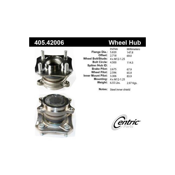 centric premium hub and bearing assembly centric premium non-driven hubs (without abs) - engineered from the highest quality materials for extended service life. Widest range of wheel hubs & bearings in the market. 100% o.e. Quality components; premium seals protect internal components; exacting fit and function; complete cataloging, featuring the latest applications and covering from 1940 to 2017. aplication summary: 2007 - 2010 nissan sentra