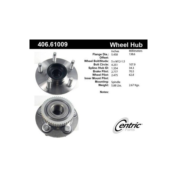 centric premium hub and bearing assembly; with abs tone ring centric premium non-driven hubs (with abs) - engineered from the highest quality materials for extended service life. Widest range of wheel hubs & bearings in the market. 100% o.e. Quality components. Premium seals protect internal components. Exacting fit and function. Complete cataloging, featuring the latest applications and covering from 1940 to 2017. aplication summary: 1991 - 1997 ford thunderbird, 1993 - 1998 lincoln mark viii, 1991 - 1997 mercury cougar