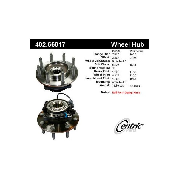 centric premium hub and bearing assembly; with integral abs centric premium driven hubs (with integral abs) - engineered from the highest quality materials for extended service life. Widest range of wheel hubs & bearings in the market. 100% o.e. Quality components; premium seals protect internal components; exacting fit and function; complete cataloging, featuring the latest applications and covering from 1940 to 2017. aplication summary: 2007 - 2010 chevrolet silverado 2500 hd, 2007 - 2010 chevrolet silverado 3500 hd, 2007 - 2010 gmc sierra 2500 hd, 2007 - 2010 gmc sierra 3500 hd, 2007 - 2013 chevrolet suburban 2500, 2007 - 2013 gmc yukon xl 2500, 2008 - 2009 hummer h2