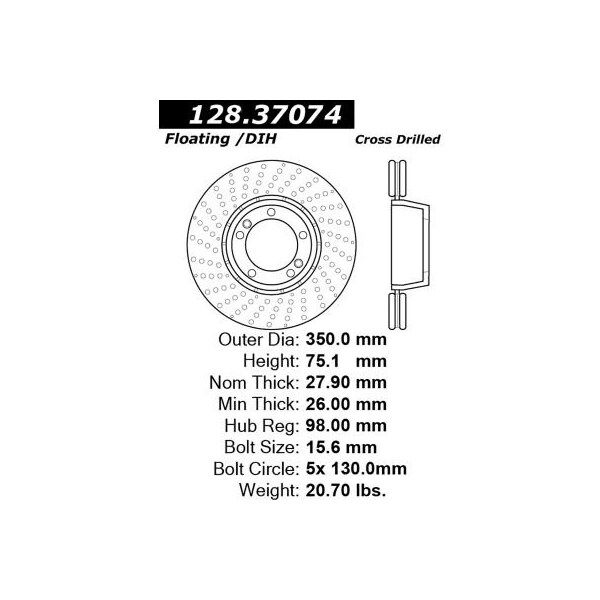 centric premium oe style drilled brake rotor centric premium rotors utilize an electrocoating finish that provides long lasting corrosion protection. E-coating is a superior electro-statically applied finish designed to withstand 400 hours of salt water exposure without rusting. Phosphate finishes utilized by other manufacturers provide only minimal protection from the elements; these finishes are generally only effective for the shipping and storage portion of a rotor's life. The addition of heat and moisture eliminates the effectiveness of phosphate finishes resulting in immediate corrosion once installed in the vehicle. Premium rotors feature 100% fully machined finishes including rotor hats; this extra process provides better rotor balance and creates a cleaner, more finished looking component. aplication summary: 2010 - 2011 porsche 911