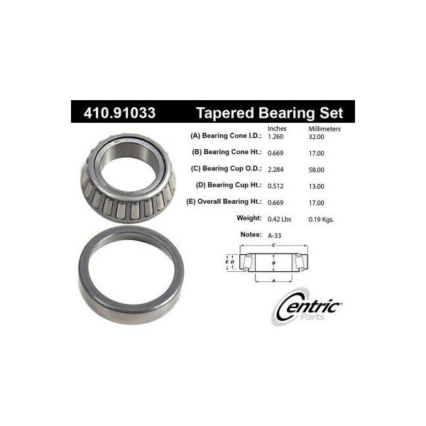 centric premium wheel bearing and race set centric premium tapered roller bearing & race sets - uniquely designed to mage both thrust and radial loads. Precision mating cup & cone. Engineered from the highest quality materials for extended service life. Widest range of tapered roller bearings in both metric and inch sizes. 100% o.e. Quality components; exacting fit and function; complete cataloging, featuring the latest applications and covering from 1940 to 2017. aplication summary: 1976 - 1983 peugeot 504, 1977 - 1984 peugeot 604, 1980 - 1989 peugeot 505