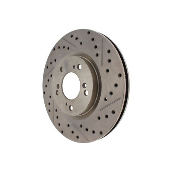 stoptech select sport drilled and slotted brake rotor; front left stoptech select sport drilled & slotted brake rotors are high quality drilled and slotted rotors that provide added bite and improved looks for any vehicle. Zinc coating provides improved protection from corrosion extending service life. Non-directional finishes. Machined non-friction surfaces. G11 metallurgy. Drilled & slotted for increased bite, improved looks and better performance, zinc coated corrosion protection. aplication summary: 2000 - 2009 honda s2000