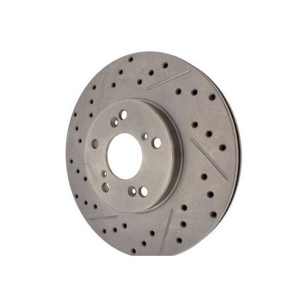 stoptech select sport drilled and slotted brake rotor; front right stoptech select sport drilled & slotted brake rotors are high quality drilled and slotted rotors that provide added bite and improved looks for any vehicle. Zinc coating provides improved protection from corrosion extending service life. Non-directional finishes. Machined non-friction surfaces. G11 metallurgy. Drilled & slotted for increased bite, improved looks and better performance, zinc coated corrosion protection. aplication summary: 1999 - 2004 honda odyssey, 1999 - 2008 acura tl, 2001 - 2003 acura cl, 2001 - 2006 acura mdx, 2003 - 2008 honda pilot, 2003 - 2012 honda accord, 2004 - 2014 acura tsx