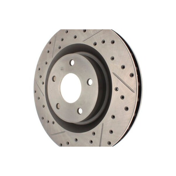 stoptech select sport drilled and slotted brake rotor; front right stoptech select sport drilled & slotted brake rotors are high quality drilled and slotted rotors that provide added bite and improved looks for any vehicle. Zinc coating provides improved protection from corrosion extending service life. Non-directional finishes. Machined non-friction surfaces. G11 metallurgy. Drilled & slotted for increased bite; improved looks and better performance; zinc coated corrosion protection. aplication summary: 2005 - 2007 cadillac xlr, 2005 - 2013 chevrolet corvette