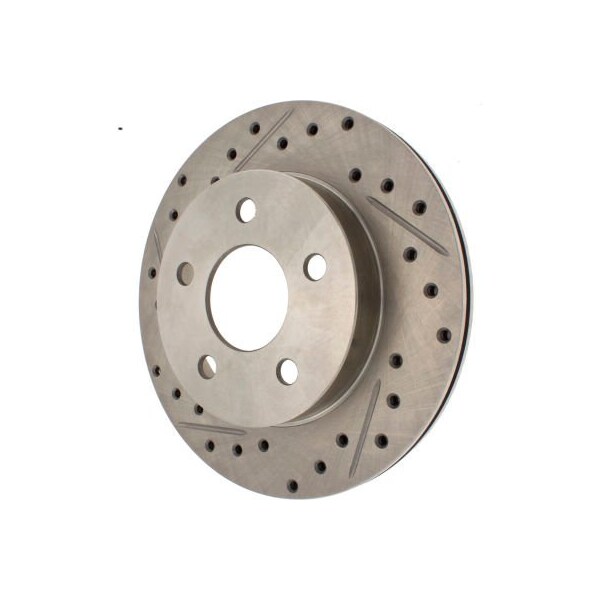 stoptech select sport drilled and slotted brake rotor; rear right stoptech select sport drilled & slotted brake rotors are high quality drilled and slotted rotors that provide added bite and improved looks for any vehicle. Zinc coating provides improved protection from corrosion extending service life. Non-directional finishes. Machined non-friction surfaces. G11 metallurgy. Drilled & slotted for increased bite; improved looks and better performance; zinc coated corrosion protection. aplication summary: 1993 - 1997 ford thunderbird, 1993 - 1998 lincoln mark viii, 1993 - 1997 mercury cougar