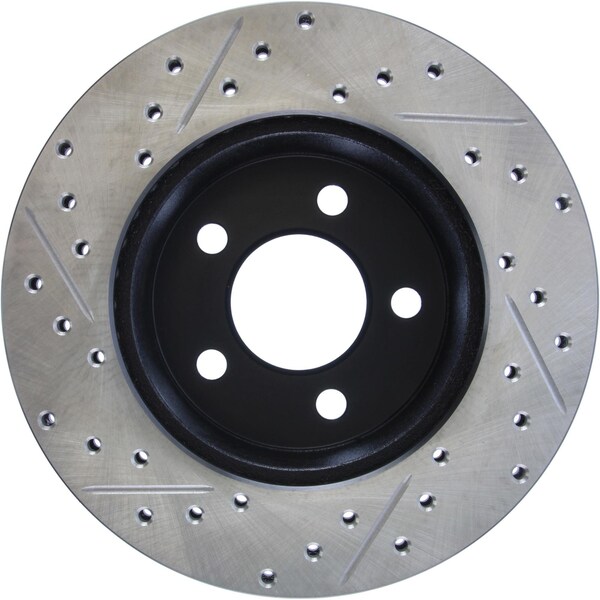 stoptech sport drilled/slotted brake rotor; front left stoptech drilled and slotted sport rotors are 1-piece direct replacement brake discs for factory brake systems and stock calipers that look great behind your wheels and offer significantly improved braking performance. The unique cross-drilling and slotting aids with heat and brake dust dispersal, prevents glazing of the pads, adds bite and improves wet and dry braking performance. Built to last, the black e-coating provides protection from corrosion and the high carbon metallurgy (in most applications) offers quieter operation, better crack resistance and increased performance. Premium e-coated rotor with advanced metallurgy that greatly reduces pad squeal. Especially effective with higher friction, european style brake pad compounds. Drilled & slotted for increased bite, improved looks and better performance. aplication summary: 1997 - 2002 dodge dakota, 1998 - 2002 dodge durango
