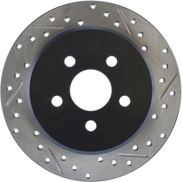 stoptech sport drilled/slotted brake rotor; rear left stoptech drilled and slotted sport rotors are 1-piece direct replacement brake discs for factory brake systems and stock calipers that look great behind your wheels and offer significantly improved braking performance. The unique cross-drilling and slotting aids with heat and brake dust dispersal, prevents glazing of the pads, adds bite and improves wet and dry braking performance. Built to last, the black e-coating provides protection from corrosion and the high carbon metallurgy (in most applications) offers quieter operation, better crack resistance and increased performance. Premium e-coated rotor with advanced metallurgy that greatly reduces pad squeal. Especially effective with higher friction, european style brake pad compounds. Drilled & slotted for increased bite, improved looks and better performance. aplication summary: 1995 - 2001 plymouth neon, 1995 - 2003 dodge neon, 2001 - 2003 chrysler pt cruiser