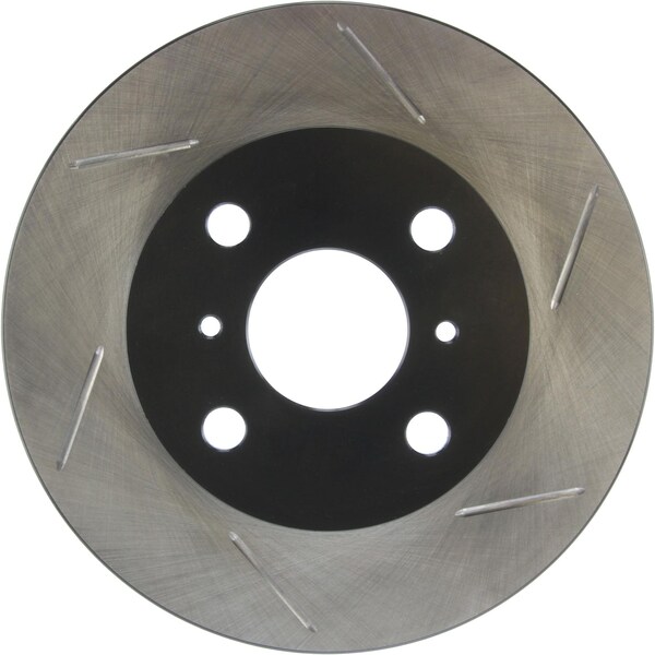 stoptech sport slotted brake rotor; front left stoptech slotted sport rotors are 1-piece direct replacement brake discs for factory brake systems and stock calipers that look great behind your wheels and offer significantly improved braking performance. The unique slotting aids with heat and brake dust dispersal, prevents glazing of the pads, adds bite and improves wet and dry braking performance. Built to last, the black e-coating provides protection from corrosion and the high carbon metallurgy (in most applications) offers quieter operation, better crack resistance and increased performance. Premium e-coated rotor with advanced metallurgy that greatly reduces pad squeal. Especially effective with higher friction, european style brake pad compounds. Slotted for increased bite, improved looks and better performance. aplication summary: 2000 - 2000 toyota echo