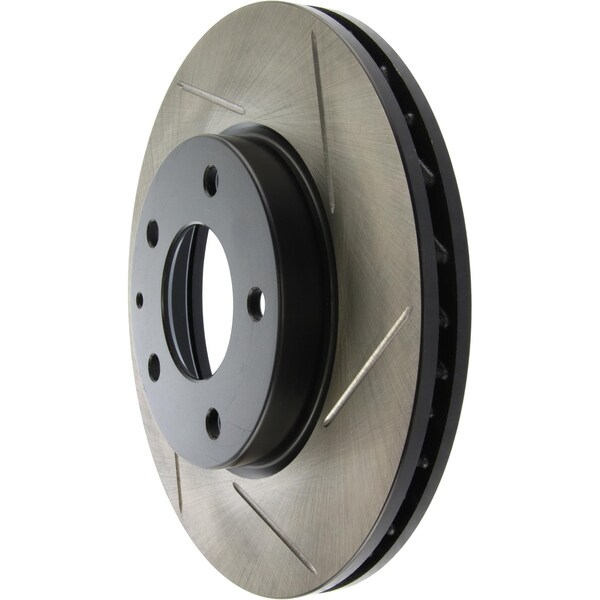 stoptech sport slotted brake rotor; front left stoptech slotted sport rotors are 1-piece direct replacement brake discs for factory brake systems and stock calipers that look great behind your wheels and offer significantly improved braking performance. The unique slotting aids with heat and brake dust dispersal; prevents glazing of the pads; adds bite and improves wet and dry braking performance. Built to last; the black e-coating provides protection from corrosion and the high carbon metallurgy (in most applications) offers quieter operation; better crack resistance and increased performance. Premium e-coated rotor with advanced metallurgy that greatly reduces pad squeal. Especially effective with higher friction; european style brake pad compounds. Slotted for increased bite; improved looks and better performance. aplication summary: 1998 - 2002 mazda 626, 1992 - 1995 mazda 929, 2003 - 2003 mazda protege