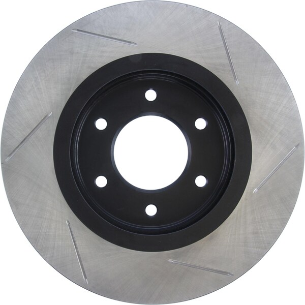 stoptech sport slotted brake rotor; front right stoptech slotted sport rotors are 1-piece direct replacement brake discs for factory brake systems and stock calipers that look great behind your wheels and offer significantly improved braking performance. The unique slotting aids with heat and brake dust dispersal, prevents glazing of the pads, adds bite and improves wet and dry braking performance. Built to last, the black e-coating provides protection from corrosion and the high carbon metallurgy (in most applications) offers quieter operation, better crack resistance and increased performance. Premium e-coated rotor with advanced metallurgy that greatly reduces pad squeal. Especially effective with higher friction, european style brake pad compounds. Slotted for increased bite, improved looks and better performance. aplication summary: 2007 - 2015 nissan titan, 2008 - 2010 infiniti qx56, 2008 - 2015 nissan armada