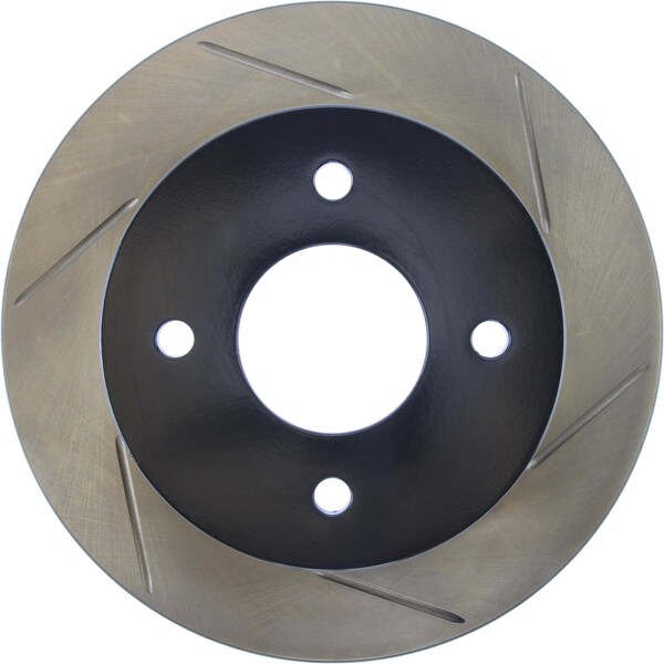 stoptech sport slotted brake rotor; rear left stoptech slotted sport rotors are 1-piece direct replacement brake discs for factory brake systems and stock calipers that look great behind your wheels and offer significantly improved braking performance. The unique slotting aids with heat and brake dust dispersal, prevents glazing of the pads, adds bite and improves wet and dry braking performance. Built to last, the black e-coating provides protection from corrosion and the high carbon metallurgy (in most applications) offers quieter operation, better crack resistance and increased performance. Premium e-coated rotor with advanced metallurgy that greatly reduces pad squeal. Especially effective with higher friction, european style brake pad compounds. Slotted for increased bite, improved looks and better performance. aplication summary: 1979 - 1981 nissan 280zx, 1980 - 1981 nissan 200sx, 1981 - 1981 nissan maxima