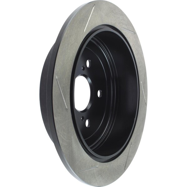 stoptech sport slotted brake rotor; rear left stoptech slotted sport rotors are 1-piece direct replacement brake discs for factory brake systems and stock calipers that look great behind your wheels and offer significantly improved braking performance. The unique slotting aids with heat and brake dust dispersal, prevents glazing of the pads, adds bite and improves wet and dry braking performance. Built to last, the black e-coating provides protection from corrosion and the high carbon metallurgy (in most applications) offers quieter operation, better crack resistance and increased performance. Premium e-coated rotor with advanced metallurgy that greatly reduces pad squeal. Especially effective with higher friction, european style brake pad compounds. Slotted for increased bite, improved looks and better performance. aplication summary: 2010 - 2014 lexus rx450h, 2010 - 2015 lexus rx350, 2011 - 2015 toyota sienna, 2014 - 2015 toyota highlander