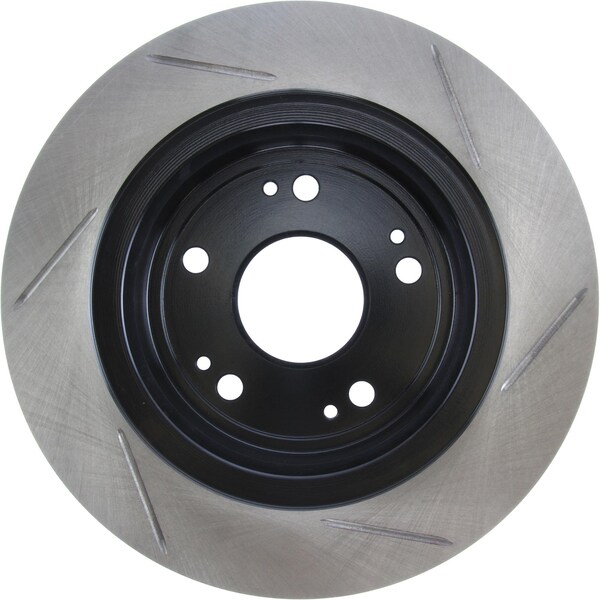 stoptech sport slotted brake rotor; rear right stoptech slotted sport rotors are 1-piece direct replacement brake discs for factory brake systems and stock calipers that look great behind your wheels and offer significantly improved braking performance. The unique slotting aids with heat and brake dust dispersal; prevents glazing of the pads; adds bite and improves wet and dry braking performance. Built to last; the black e-coating provides protection from corrosion and the high carbon metallurgy (in most applications) offers quieter operation; better crack resistance and increased performance. Premium e-coated rotor with advanced metallurgy that greatly reduces pad squeal. Especially effective with higher friction; european style brake pad compounds. Slotted for increased bite; improved looks and better performance. aplication summary: 2016 - 2019 acura ilx, 2009 - 2014 acura tsx, 2005 - 2020 honda accord, 2016 - 2019 honda hr-v