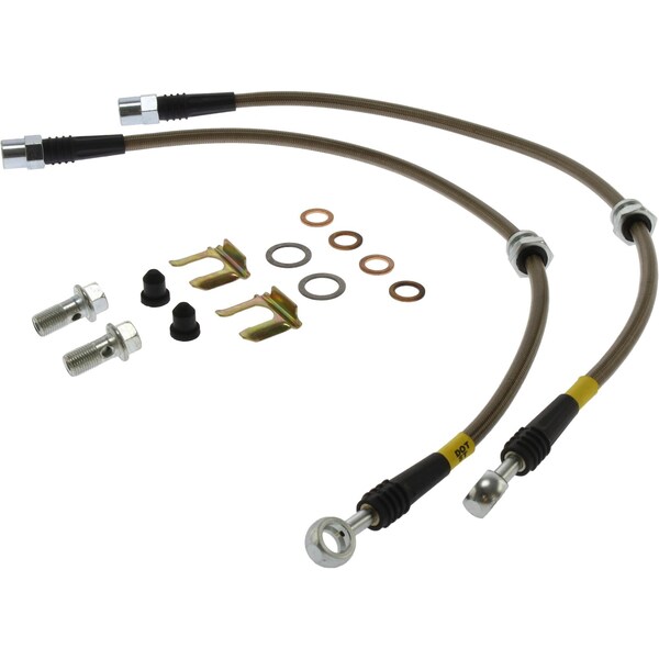 stoptech stainless steel brake line kit stoptech stainless steel braided brake lines provide a quicker; firmer; more consistent pedal response by maintaining consistent brake pressure. Additionally; stainless steel lines provide precision brake modulation; especially during threshold braking. The improvement in pedal feel is more dramatic on older vehicles where the factory rubber line may have softened and swelled due to age.a variety of end fittings are available to meet application needs. All fittings are engineered for proper fit and durability. All necessary brackets and fasteners are included with each line kit. Ptfe inner liner is resistant to expansion under pressure. Stainless steel woven braid provides support and resistance to impacts and abrasion. Clear pvc cover protects against chaffing. Strain relief devices reinforce end fittings.