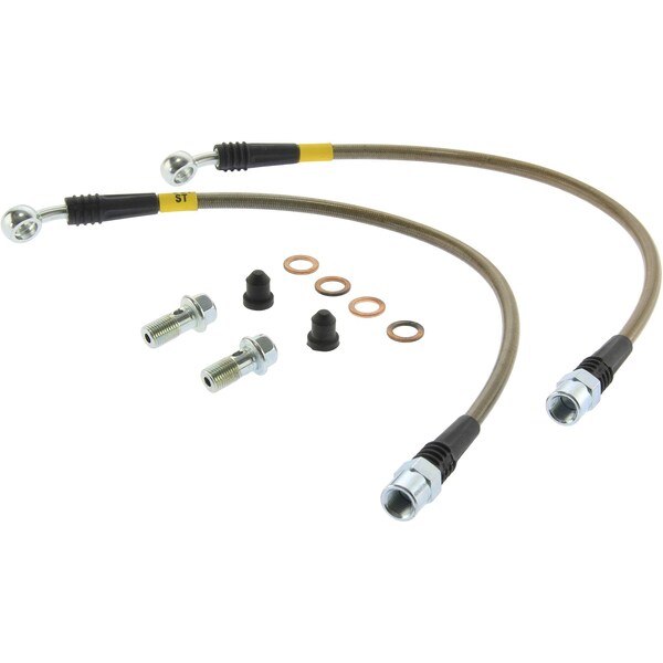 stoptech stainless steel brake line kit stoptech stainless steel braided brake lines provide a quicker; firmer; more consistent pedal response by maintaining consistent brake pressure. Additionally; stainless steel lines provide precision brake modulation; especially during threshold braking. The improvement in pedal feel is more dramatic on older vehicles where the factory rubber line may have softened and swelled due to age.a variety of end fittings are available to meet application needs. All fittings are engineered for proper fit and durability. All necessary brackets and fasteners are included with each line kit. Ptfe inner liner is resistant to expansion under pressure. Stainless steel woven braid provides support and resistance to impacts and abrasion. Clear pvc cover protects against chaffing. Strain relief devices reinforce end fittings.