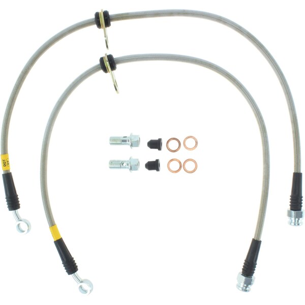 stoptech stainless steel brake line kit stoptech stainless steel braided brake lines provide a quicker; firmer; more consistent pedal response by maintaining consistent brake pressure. Additionally; stainless steel lines provide precision brake modulation; especially during threshold braking. The improvement in pedal feel is more dramatic on older vehicles where the factory rubber line may have softened and swelled due to age.a variety of end fittings are available to meet application needs. All fittings are engineered for proper fit and durability. All necessary brackets and fasteners are included with each line kit. Ptfe inner liner is resistant to expansion under pressure. Stainless steel woven braid provides support and resistance to impacts and abrasion. Clear pvc cover protects against chaffing. Strain relief devices reinforce end fittings. aplication summary: 2002 - 2006 acura rsx