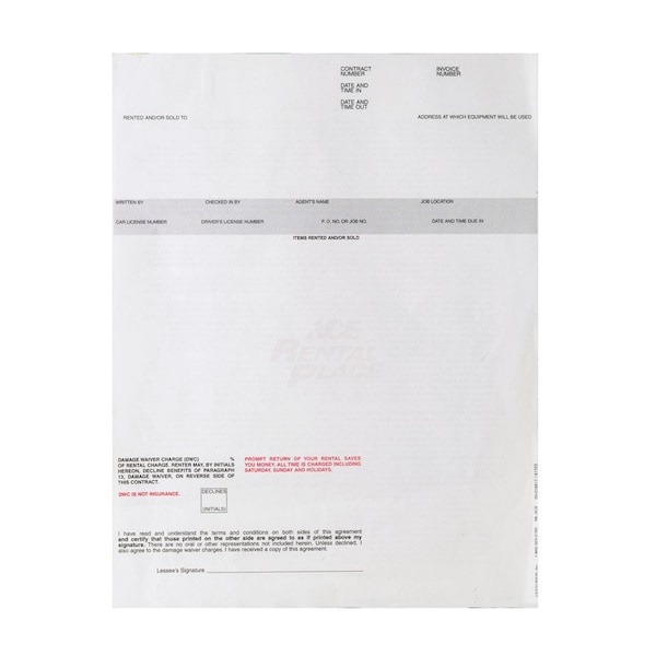 Our Total Rental Software Laser Contracts are compatible with the Total Rental System. Available in stock branded with the Ace logo. Personalized contracts are also available. * * This item is also available from the Ace Retail Support Center, sku 9166083.