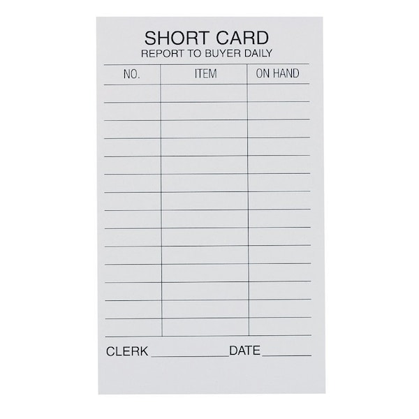 - • Single Part Short Card Returned Merchandise Pad