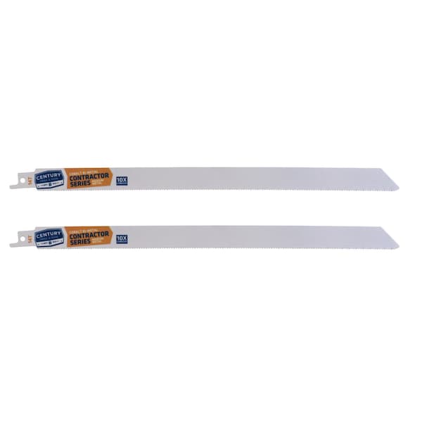 Century's Contractor Series Recip Blades lasts 10X longer when compared to standard carbon alloy blades. Unique nitro hardening process for optimal strength and blade life. Cobalt matrix teeth are fused to a flexible shatterproof shock absorbing alloy backbone for rugged cutting. 1/2" universal shank fits all popular reciprocating saws.