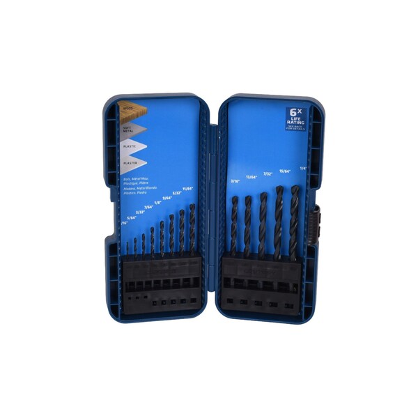 - Set includes: 1/16" to 1/4" by 64ths drill bits.
