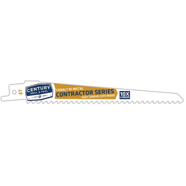 Century's Contractor Series Recip Blades lasts 10X longer when compared to standard carbon alloy blades. Unique nitro hardening process for optimal strength and blade life. Cobalt matrix teeth are fused to a flexible shatterproof shock absorbing alloy backbone for rugged cutting. 1/2" universal shank fits all popular reciprocating saws. 6" overall length. 5-PACK