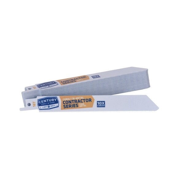 Century's Contractor Series Recip Blades lasts 10X longer when compared to standard carbon alloy blades. Unique nitro hardening process for optimal strength and blade life. Cobalt matrix teeth are fused to a flexible shatterproof shock absorbing alloy backbone for rugged cutting. 1/2" universal shank fits all popular reciprocating saws. 6" overall length. 25-PACK