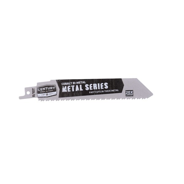 Century's Metal Series Recip Blades last 20X longer when compared to standard bi-metal blades in metal applications. Unique nitro hardening process for optimal strength and blade life. Cobalt matrix teeth are fused to a flexible shatterproof shock absorbing alloy backbone for rugged cutting. 1" width and heavy duty blade thickness for clean cuts with less vibration in heavy metal cutting applications. 1/2" universal shank with 5% tilt angle for faster cuts and skid free starts. 6" overall length. 25-PACK