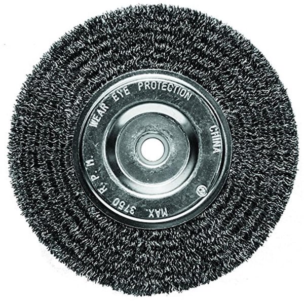 Features Universal arbor fits all standard bench grinders Bench grinder wire wheel used for cleaning threading parts tubing garden tools shop tools and other metal parts Specifications Dimension: 6 x 0.5 x 0.63 in. Weight: 0.75 lbs