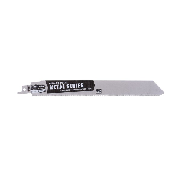 Century's Metal Series Recip Blades last 20X longer when compared to standard bi-metal blades in metal applications. Unique nitro hardening process for optimal strength and blade life. Cobalt matrix teeth are fused to a flexible shatterproof shock absorbing alloy backbone for rugged cutting. 1" width and heavy duty blade thickness for clean cuts with less vibration in heavy metal cutting applications. 1/2" universal shank with 5% tilt angle for faster cuts and skid free starts. 8" overall length. 25-PACK