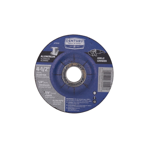 Century's Depressed Center Grinding Wheels - Aluminum features an aluminum oxide grit and premium resin bond for professional results. 1/4" thickness for grinding all types of non ferrous metals. Fiberglass reinforced for safety and increased durability.