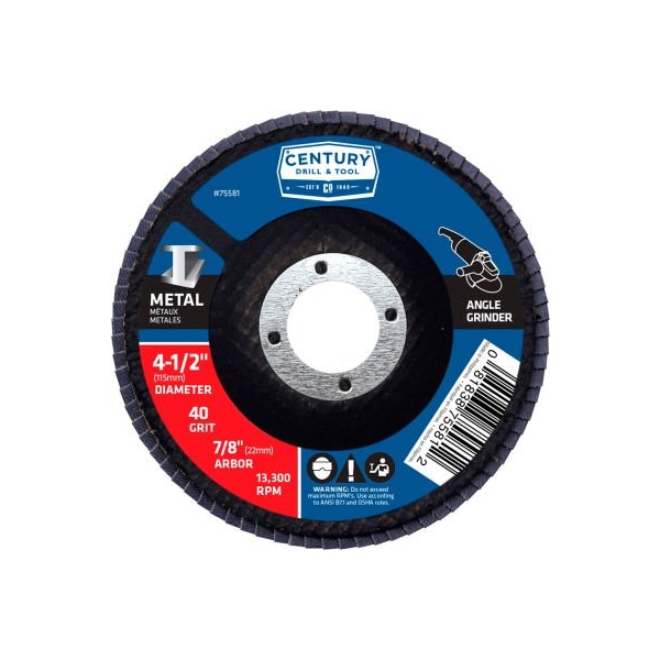 Century drill 75581 flap disc 4-1/2" x 5/8" 40 grit zirconia