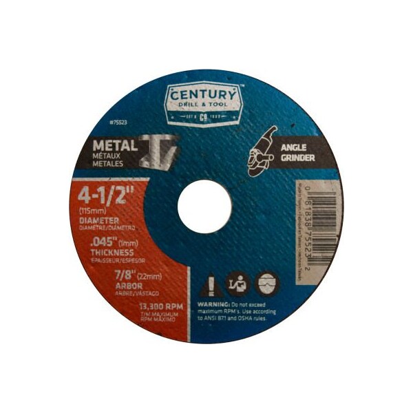 Century drill 75523 cutting wheel 4-1/2" x 7/8" aluminum oxide