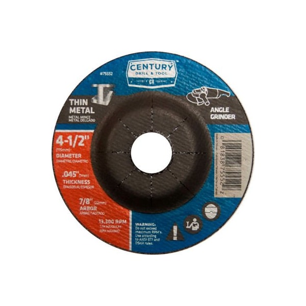 Century Drill Depressed Center Grinding Wheel 4-1/2" x 7/8" Type 27 Aluminum Oxide