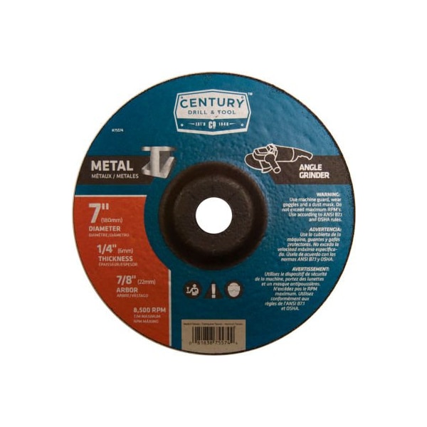 Century Drill Depressed Center Grinding Wheel 7" x 7/8" Type 27 Aluminum Oxide