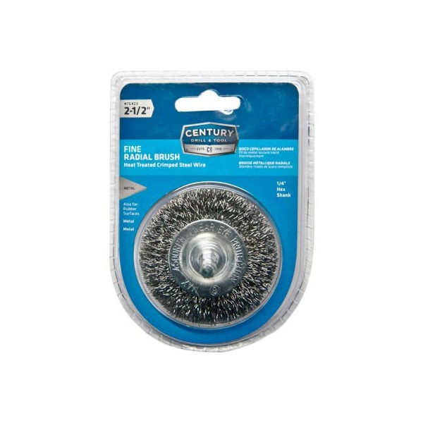 Century drill 76423 drill radial wire brush 2-1/2" dia. Steel crimped
