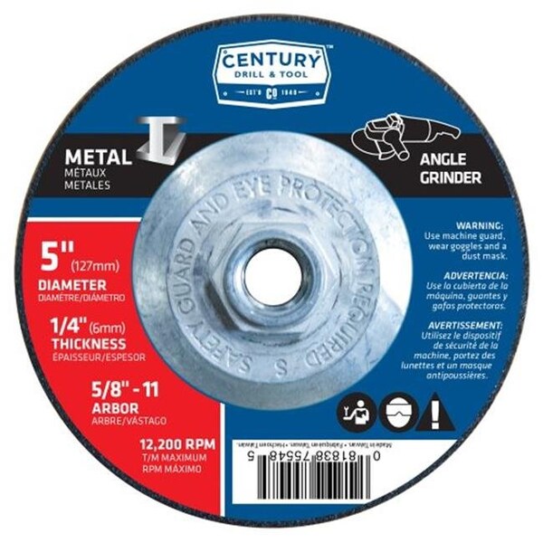 Century Drill & Tool 75548 Metal Grinding Wheel Type 27 - 5 x 0.25 in.