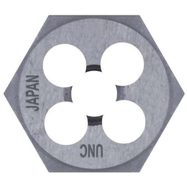 Metric dies-hexagon. Precision cut external threads, accurately formed for consistent, exact threading. Heat treated and tempered for file hard threads, and longer useful life. Designed for hand cutting applications.