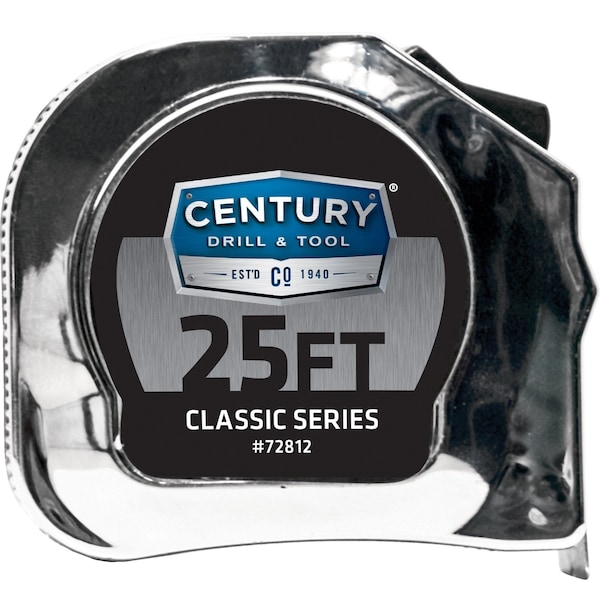 Century's Classic Series Tape Measure features positive lock to hold blade securely. High impact chrome case for durability. Convenient belt and pocket clip. Large easy to read markings for quick and accurate measurement.