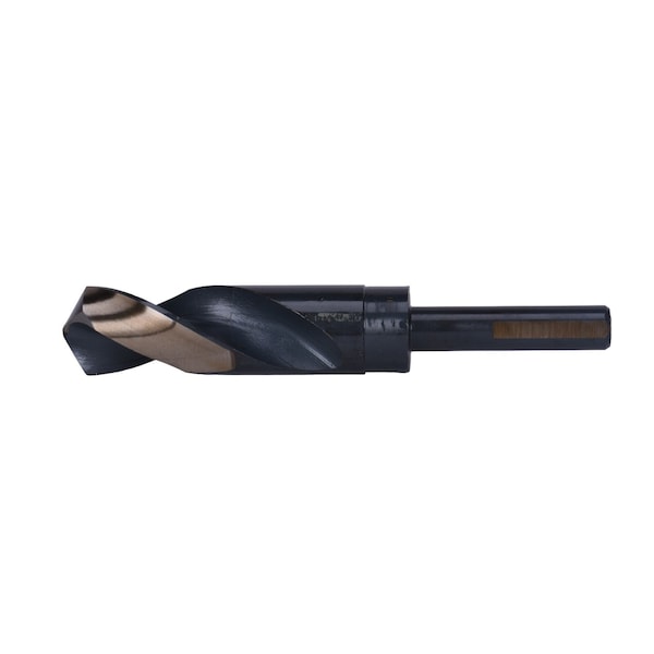 Century's Cobalt Silver and Deming style drill bits 118° split-point. Made from M35 steel with 5% cobalt, these drill bits are designed to cut through extremely hard metals including stainless steel. Duotone cobalt and black oxide finish for fast chip removal keeping the bit cool and reducing wear. Cobalt steel will remain sharper while drilling large diameter holes in ferrous and non-ferrous steels and other materials where large diameter holes are required. Reduced 1/2" shank fits all 1/2" or larger chucks.