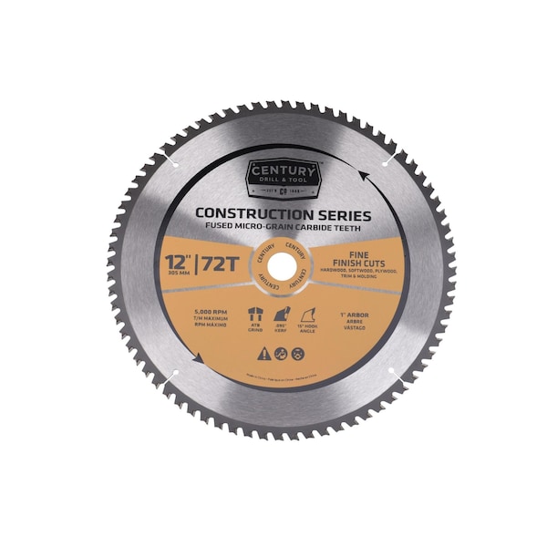 Century's Construction Series Blades (Mitre Saw) feature construction grade micro-grain carbide teeth for longer life. Thin kerf design for improved speed and ease of cut. Fully hardened plate body for added durability. Expansion slots and heat vents resist warping and reduce vibration for truer cuts.
