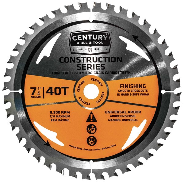 Century's Construction Series Blades (Portable Saw) feature construction grade micro-grain carbide teeth for longer life. Thin kerf design for improved speed and ease of cut. Fully hardened plate body for added durability. Expansion slots and heat vents resist warping and reduce vibration for truer cuts.