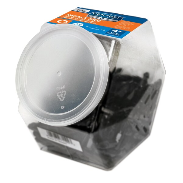 Century's Impact ProTM Screwdriving Bits are made from heat treated premium grade steel to ensure optimal performance in all applications. Century's patented heat treatment process provides maximum shock absorption associated with impact ready power tools. Precision ground tips for maximum contact and secure grip. Meets ANSI specifications. Black oxide coating resists corrosion and signifies that the accessory is impact rated. For use in standard and cordless impact drivers. Bulk Jar