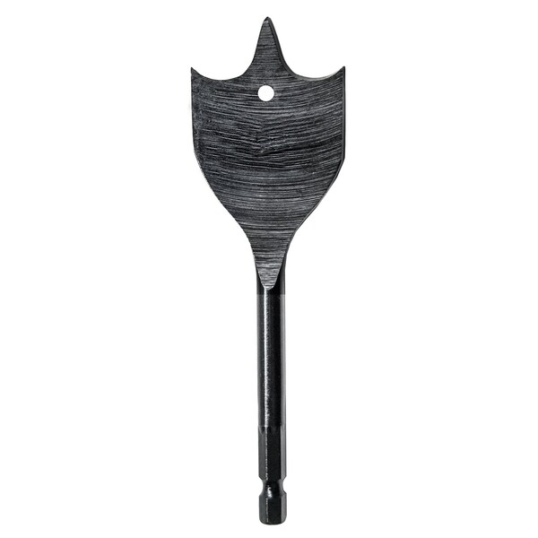 Century's Lazer Spade Bits bore perfectly defined holes in a variety of woods with less pressure. Raker Spurs form a high speed cutting wedge that bores faster smoother finished holes. 5/8" and above only. Flat ground cutting zone is easily re-sharpened with a common flat file for longer useful tool life and greater economy. Heavy duty single construction shank provides added stability; eliminates wobble. Oxide coated to resist corrosion. 1/4" hex shank.