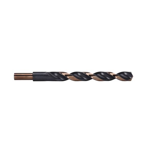 - These drill bits feature a black and gold finish.
